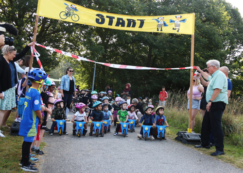 Borgmester Steen Christiansen ”skød” løbet i gang – i hvert fald løftede han minestriben, så de små kunne komme i gang med cykelløbet, med ord om, hvor sundt det er at cykle, både for børnene selv, deres forældre og miljøet. Han nævnte også, at han var glad for at alle havde husket cykelhjelm, så sikkerheden var på plads.