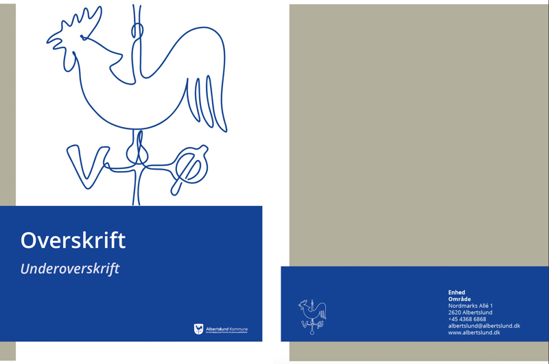 Skabelonerne følger Albertslund Kommunes visuelle identitet og er lavet for at gøre det let for dig, at lave flotte publikationer og sende dem til print i rådhusets trykkeri.