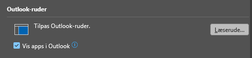 Her sættes flueben i feltet Vis apps i Outlook